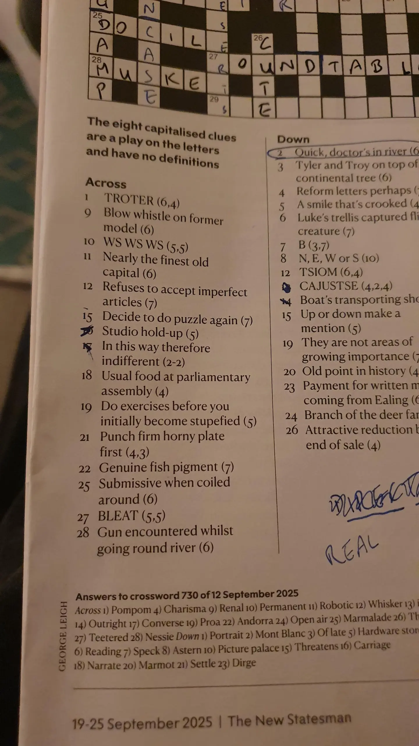 New Statesman Missing Clue R crosswords